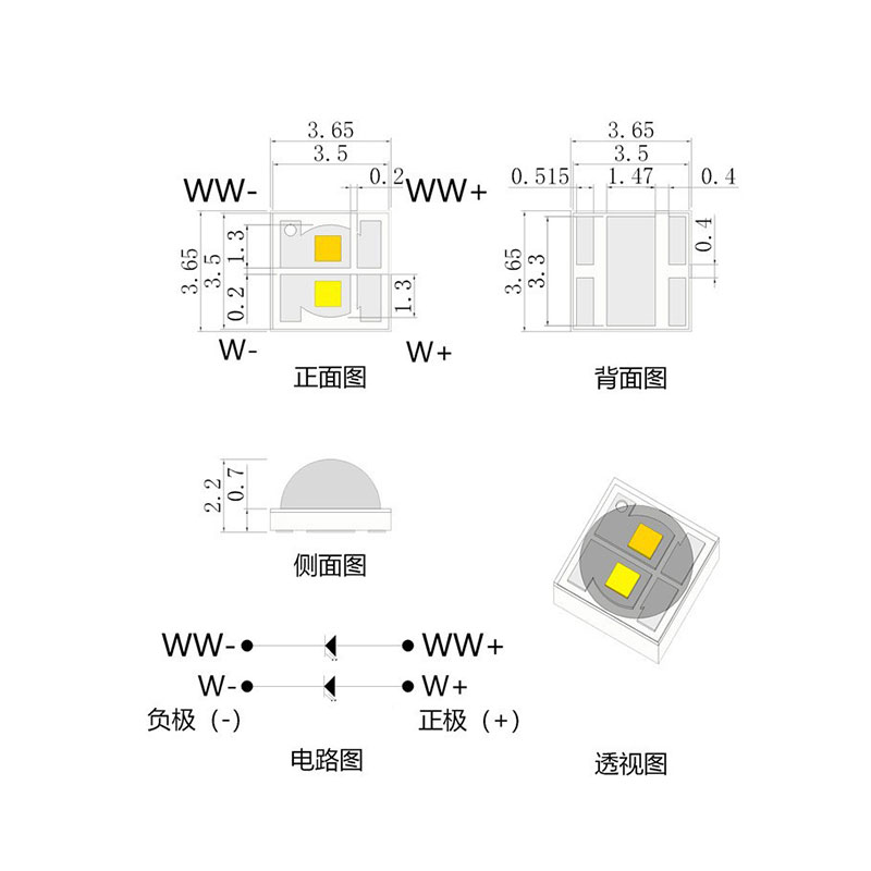 3535球頭雙色溫大功率陶瓷燈珠